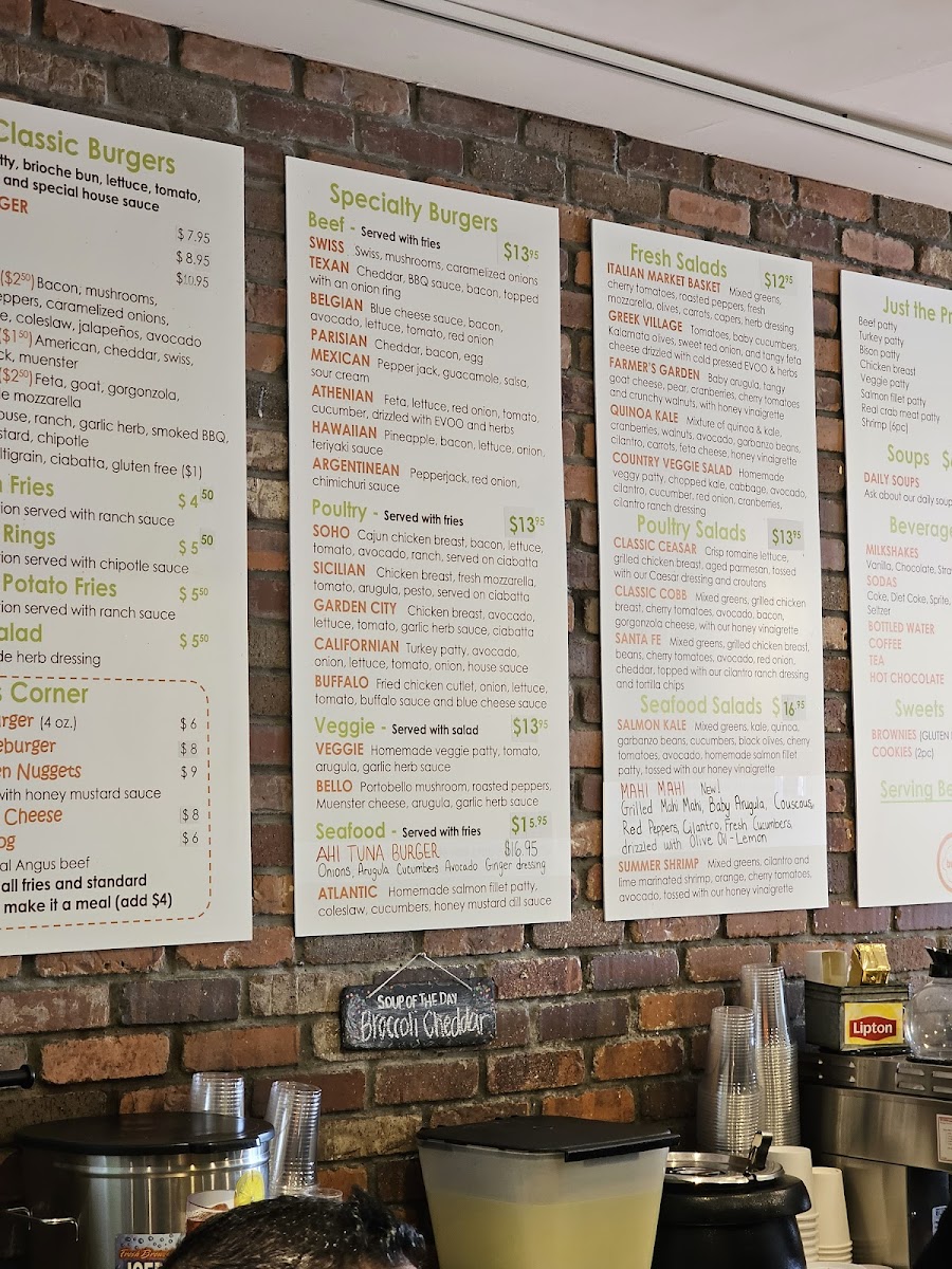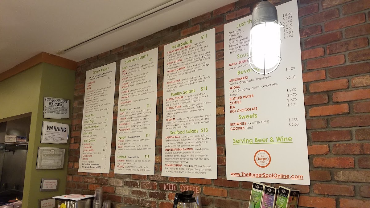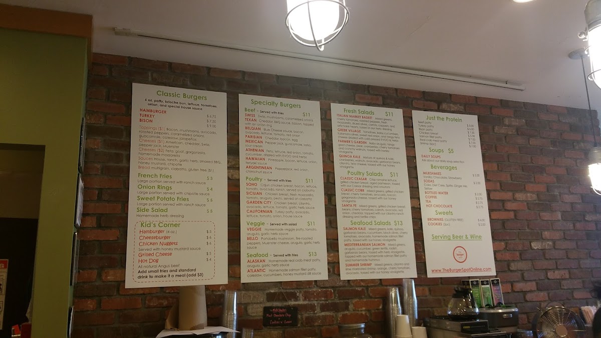 The Burger Spot in Garden City offers a quintessential American dining experience centered around expertly crafted hamburgers. Their menu proudly features juicy 6oz patties, cooked to order with precision, delivering robust flavors that satisfy every bite. Alongside classic cheeseburgers, the menu extends to a thoughtful selection of sides including crispy French fries, crunchy onion rings, and sweet potato fries, each paired with complementary dipping sauces like ranch and chipotle. For lighter options, a fresh side salad with homemade herb dressing and daily soups add variety. Families will appreciate the Kid's Corner, offering favorites such as chicken nuggets with honey mustard and all-natural Angus beef hot dogs. Customer feedback highlights the friendly service and the quality of the food—burgers are consistently juicy and fries delightfully crisp. Despite intimate seating, The Burger Spot promises a warm atmosphere and hearty meals, making it an inviting stop for fast, flavorful American comfort food in a casual diner setting.
